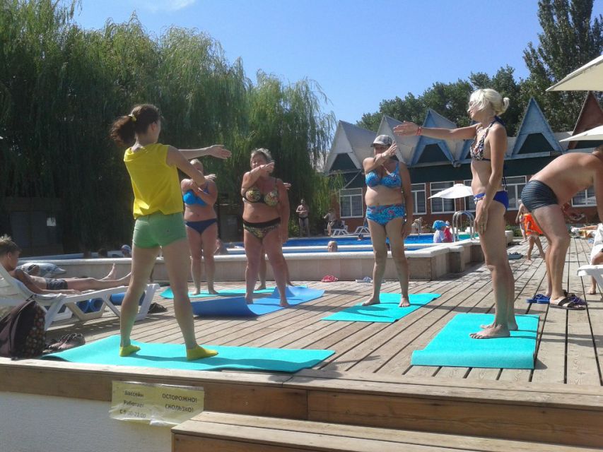 В течение всей недели по расписанию проходит наш тренер проводит занятия аквааэробикой. Нет ничего лучше, чем взбодриться в бассейне с прохладной водой.